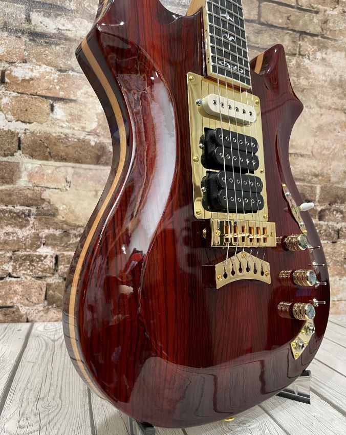 The PHRED instruments Liger 3.0 gets its inspiration from Doug Irwin's Tiger guitar, one of the iconic guitars played by Jerry Garcia. The Liger 3.0 is the successor to the Liger model with the Liger 3.0 featuring a 3-layer body.